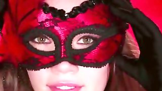 Brunette in Mask Sucking Dick Stranger after Party